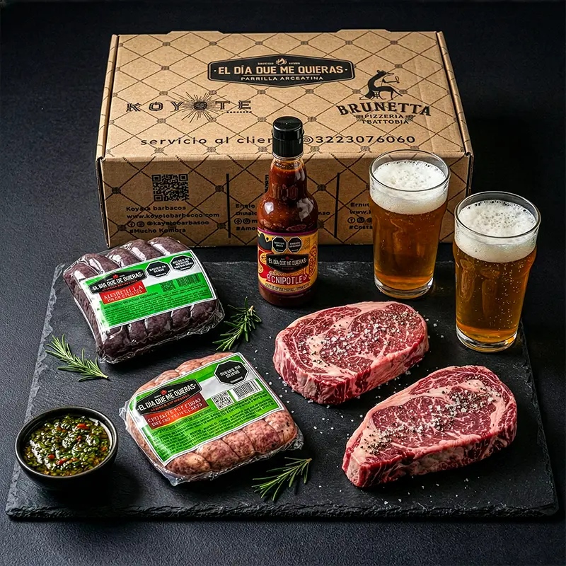 Disfruta de nuestra Cajita parrillera para 2 personas con lo mejor de nuestras carnes de calidad premium, solo en el día que me quieras. Alista la parrilla y prepara en casa tus cortes favoritos como todo un experto.