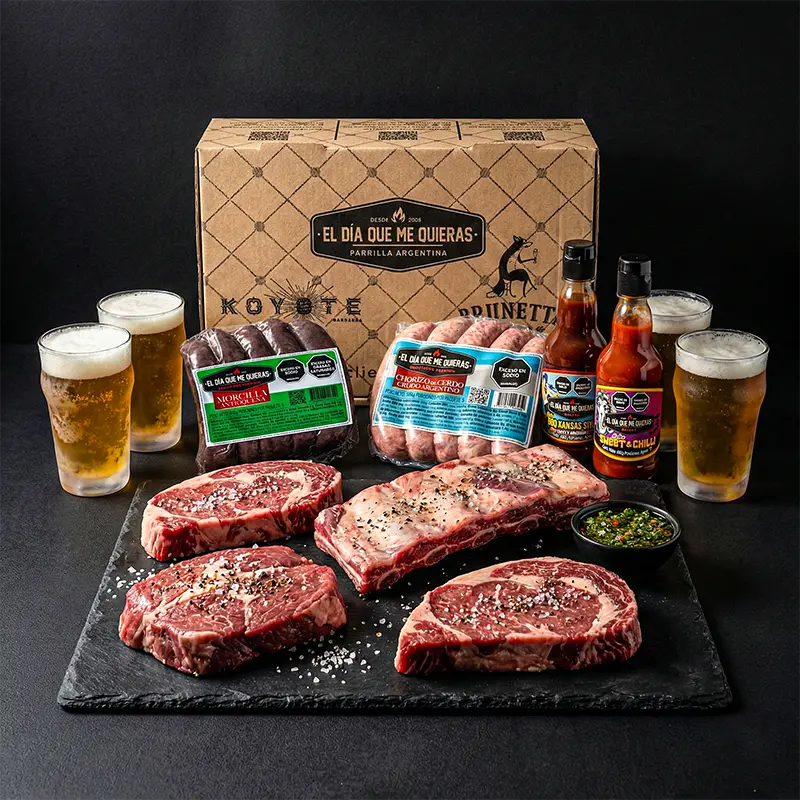 Disfruta de nuestra Cajita parrillera para 4 personas con lo mejor de nuestras carnes de calidad premium, solo en el día que me quieras.